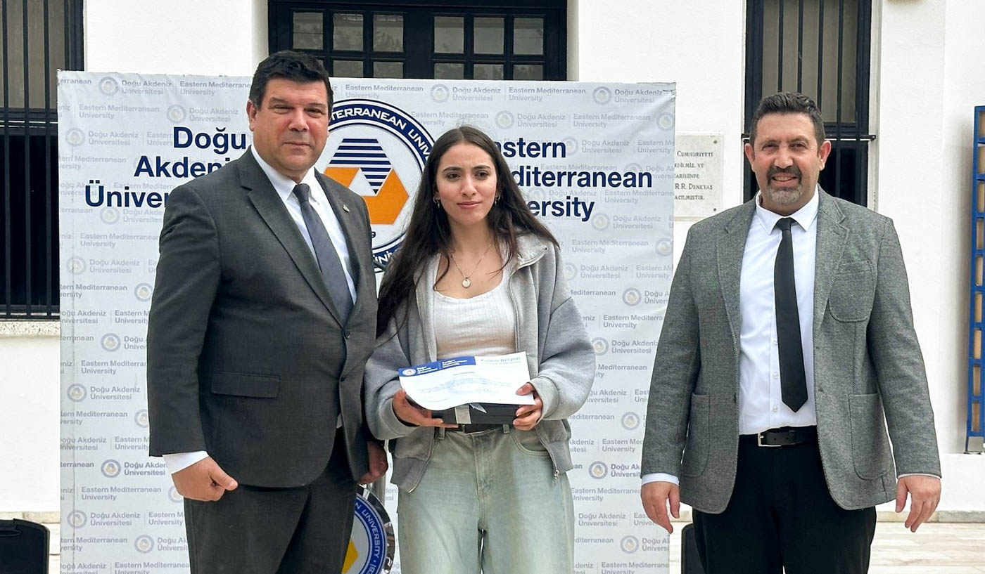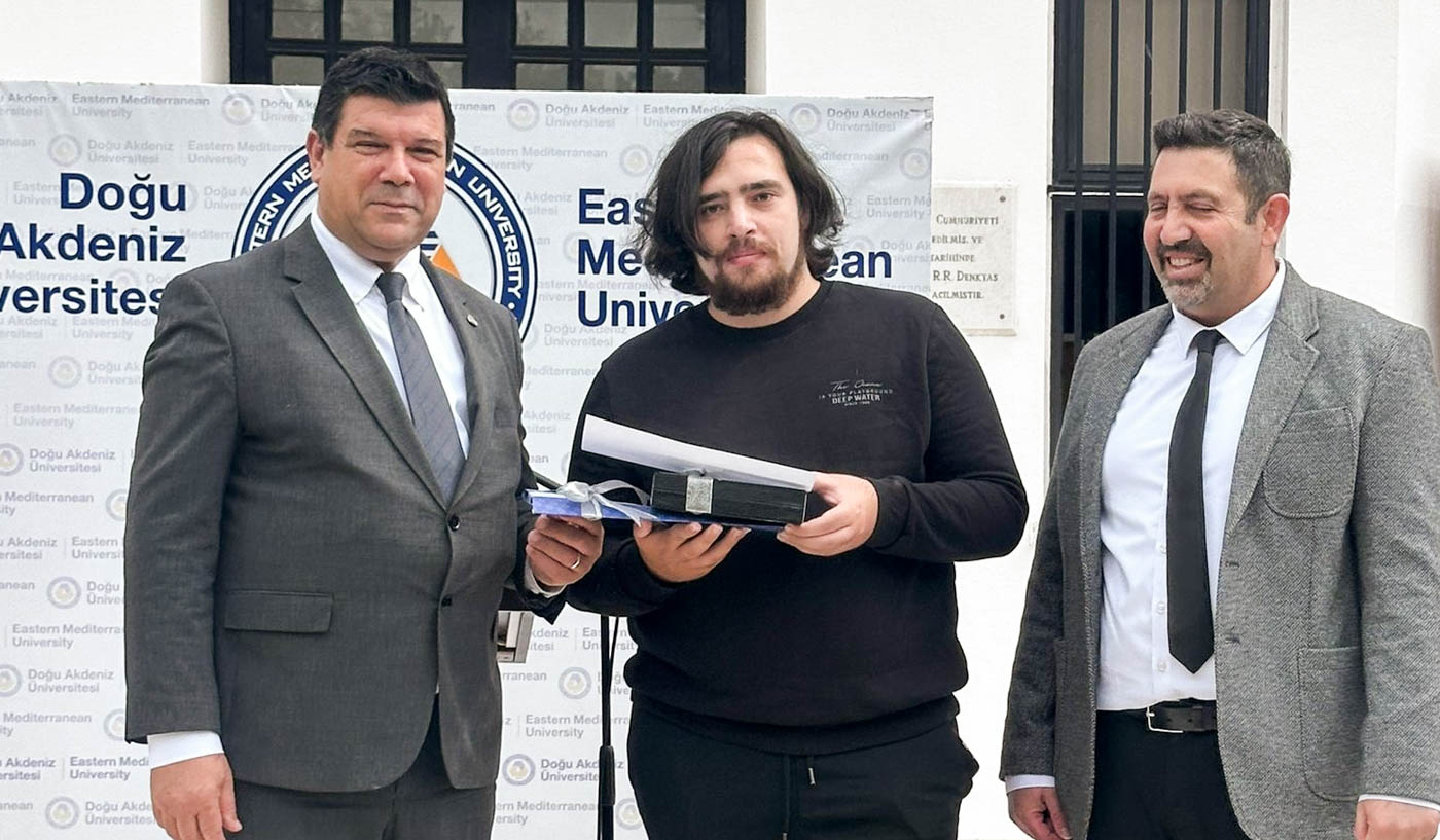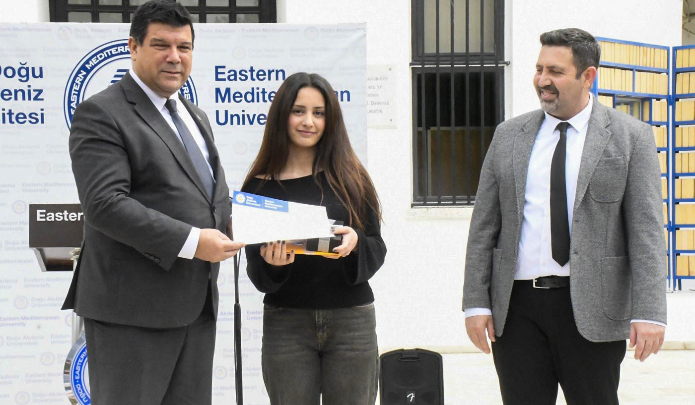 As part of the program, the “Those Who Read More Know More” awards were presented to the students who borrowed the highest number of books from the library in 2025 by EMU Rector Prof. Dr. Hasan Kılıç and Özay Oral Library Director Osman Soykan. At the award ceremony, third place was shared by Emin Aydın Gencer from the Faculty of Law and Kübra Birer from the Department of Business Administration, Faculty of Business and Economics. The second prize was awarded to Batuhan Çavuş from the Department of Electrical and Electronic Engineering, Faculty of Engineering. The first prize was awarded to Teslime Turna from the Department of Primary School Mathematics Teaching, Faculty of Education.