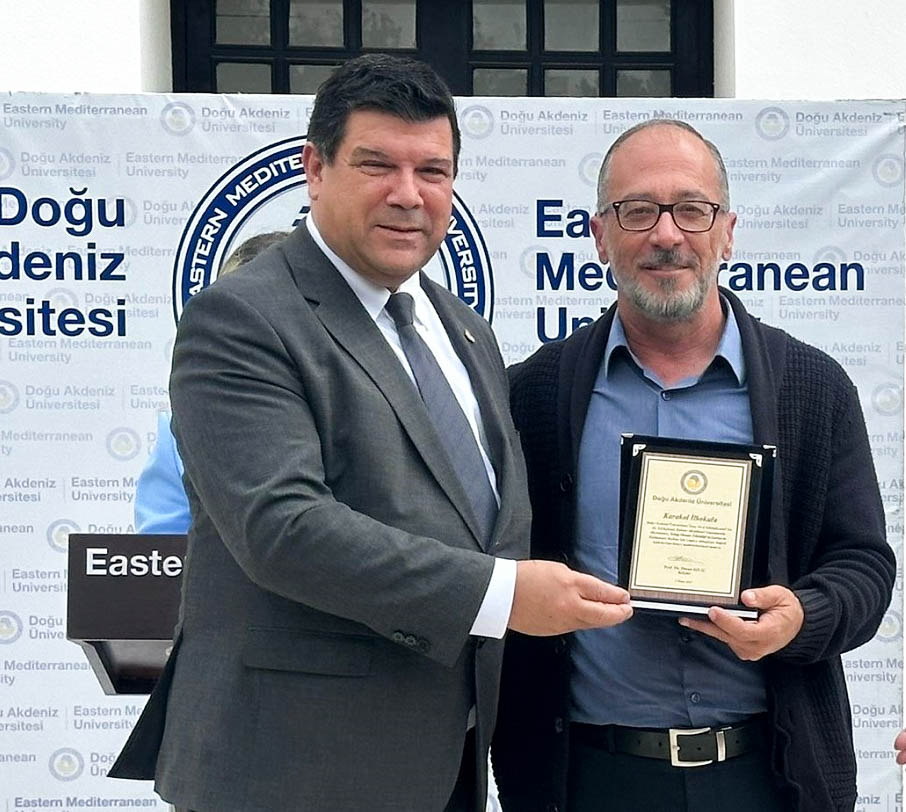 Furthermore, EMU Rector Prof. Dr. Hasan Kılıç and Özay Oral Library Director Osman Soykan presented a plaque to Remzi Elbruz Atalay, Principal of Karakol Elementary School in recognition of their participation in the event.