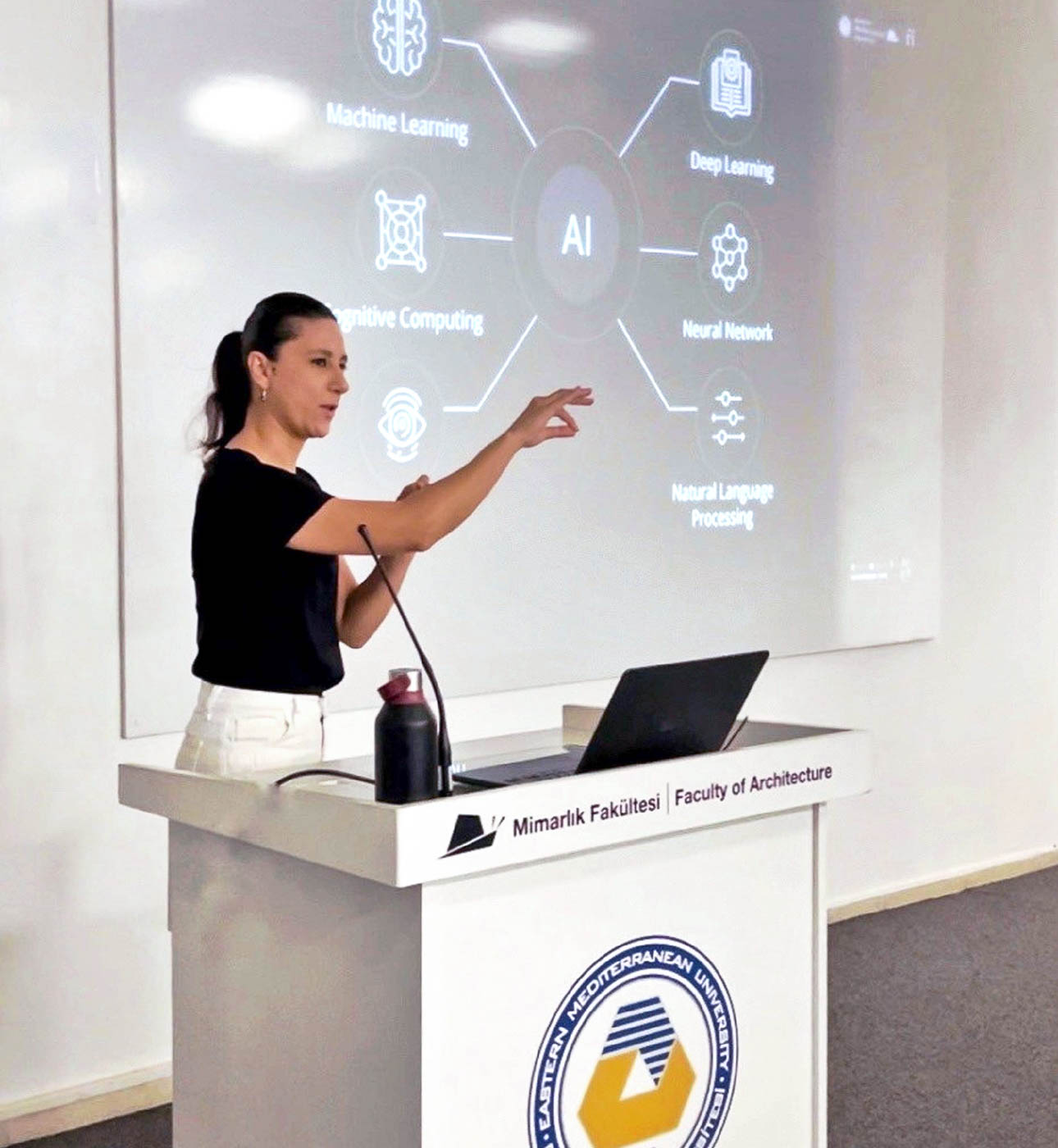 Throughout the 2025 Academic Year, Eastern Mediterranean University (EMU), Faculty of Architecture, Department of Architecture organized a series of academic seminars under the theme “Artificial Intelligence (AI) in Architecture”. Led by Assoc. Prof. Dr. Ceren Boğaç from the department, the seminar series explored the educational, ethical, and design-related implications of artificial intelligence in architecture through a comprehensive and multidimensional approach.