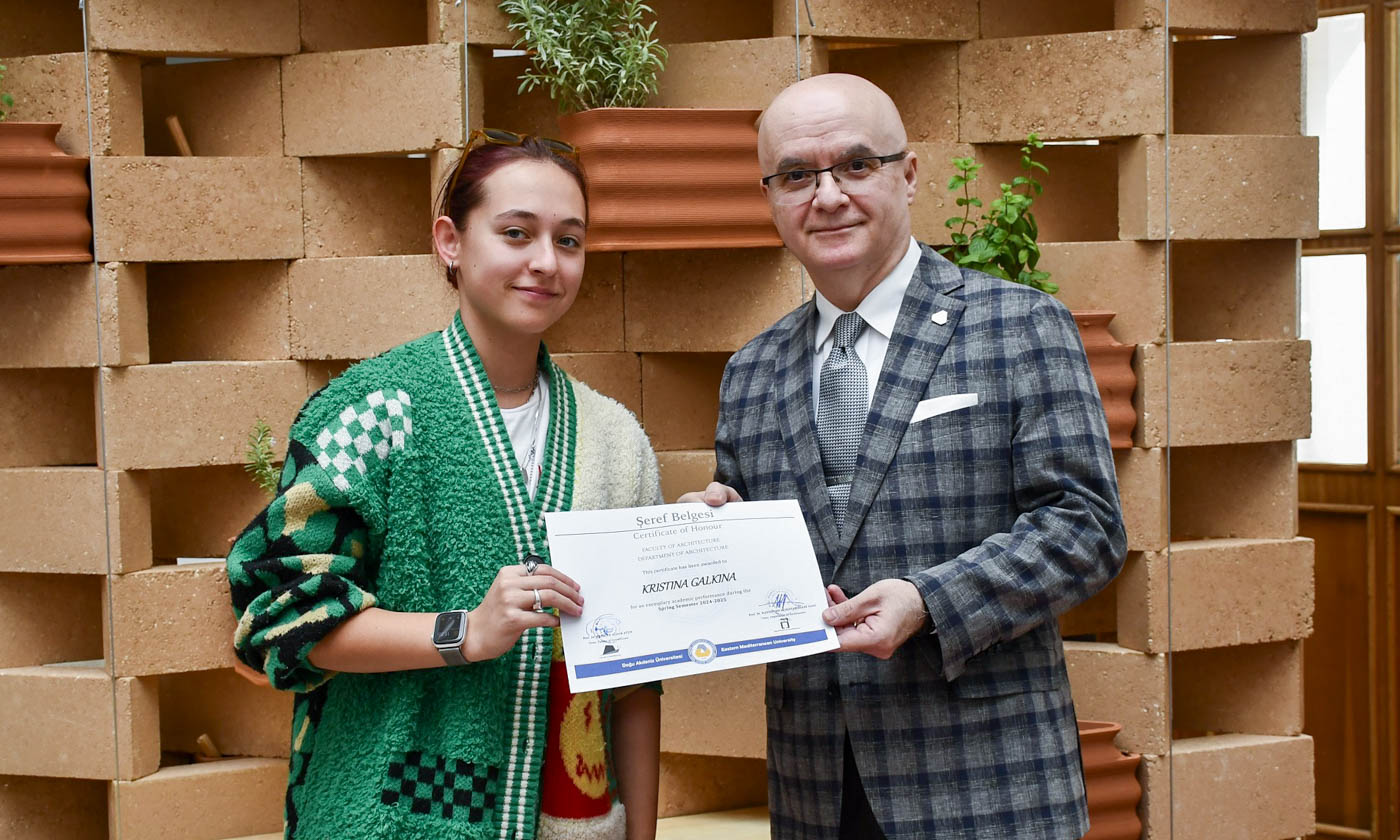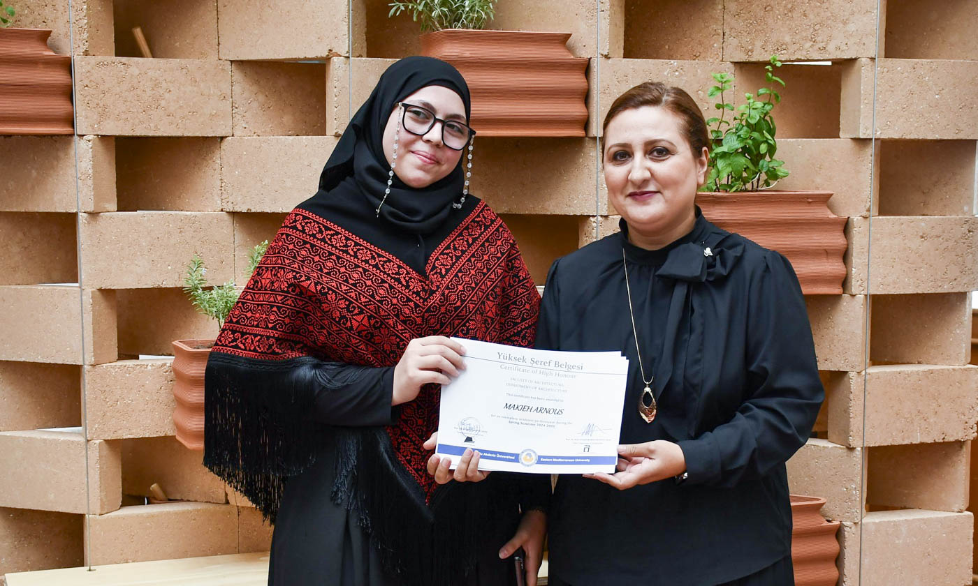 Eastern Mediterranean University (EMU), Faculty of Architecture, Department of Architecture organized an Honor and High Honor Ceremony for 2024-2025 Spring Semester, acknowledging the academic achievement of its students. Realized with the aim of celebrating the achievement of the students and boosting academic motivation, the ceremony was attended by EMU Vice Rector for Academic Affairs Prof. Dr. Osman M. Karatepe, Faculty of Architecture Dean of the term Prof. Dr. Resmiye Alpar Atun, Chair of Department of Architecture Prof. Dr. Rafooneh M. Sani, Vice Chair of Department of Architecture Assist. Prof. Dr. Öznem Şahali, academic personnel and guests.