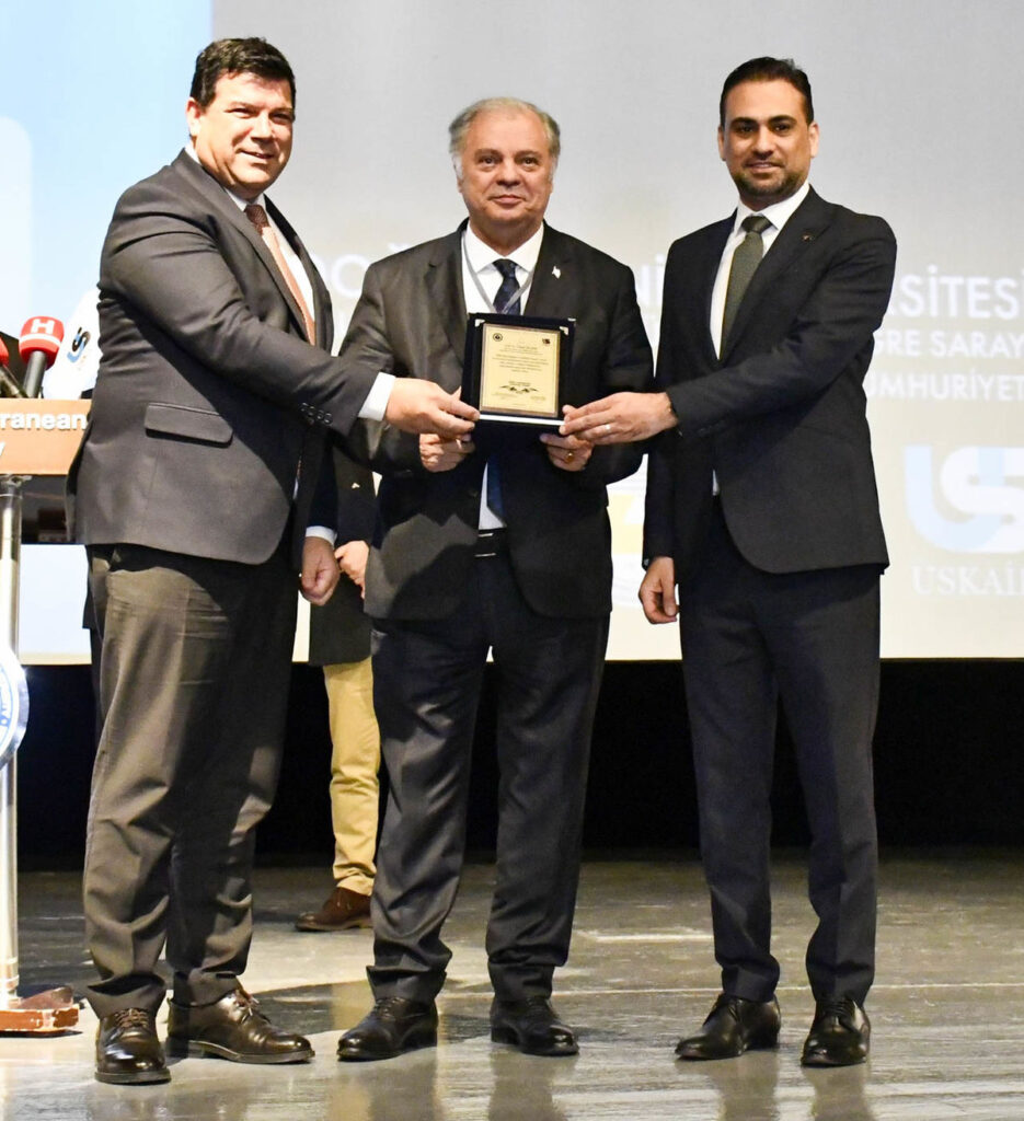 Following the opening speeches, EMU Rector Prof. Dr. Hasan Kılıç and President of USKAİD and Attorney Selman Yaray presented plaques to the guest speakers. Furthermore, members of Parliament who delivered speeches at the event, presented EMU Rector Prof. Dr. Kılıç a souvenir on behalf of the Grand National Assembly of Türkiye.