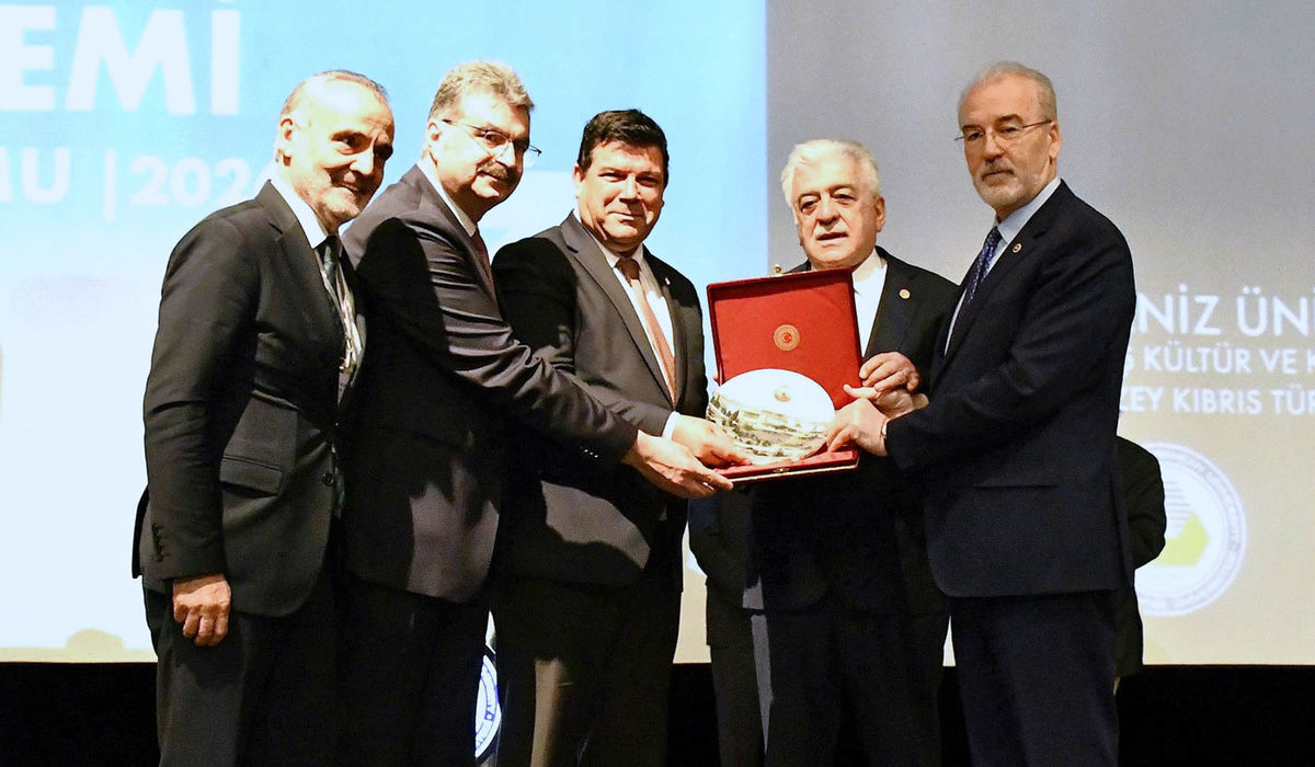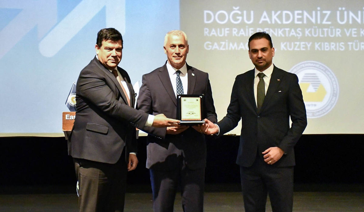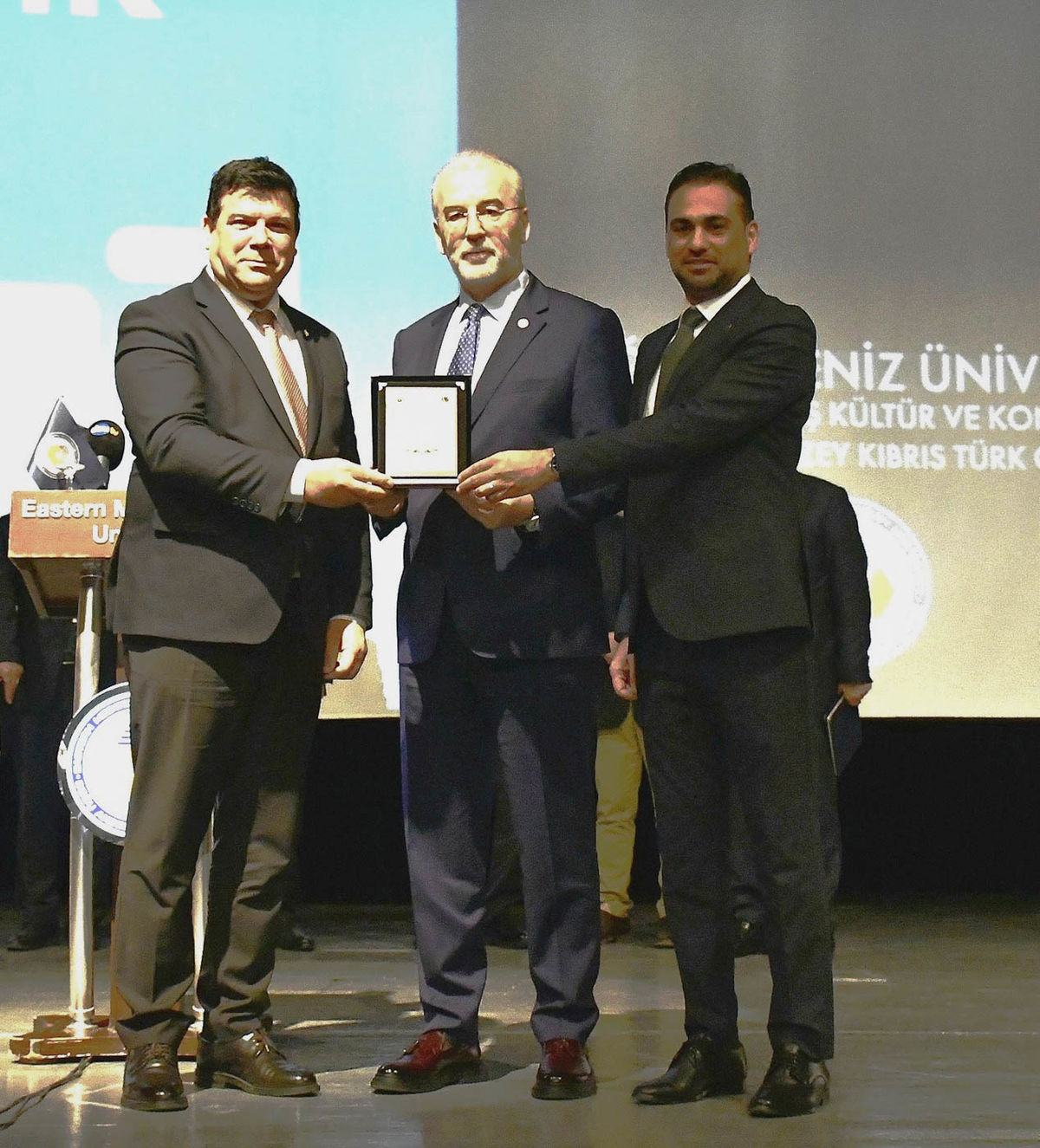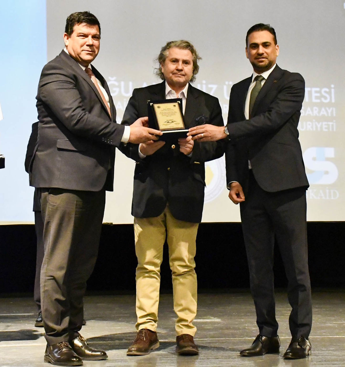 Following the opening speeches, EMU Rector Prof. Dr. Hasan Kılıç and President of USKAİD and Attorney Selman Yaray presented plaques to the guest speakers. Furthermore, members of Parliament who delivered speeches at the event, presented EMU Rector Prof. Dr. Kılıç a souvenir on behalf of the Grand National Assembly of Türkiye.