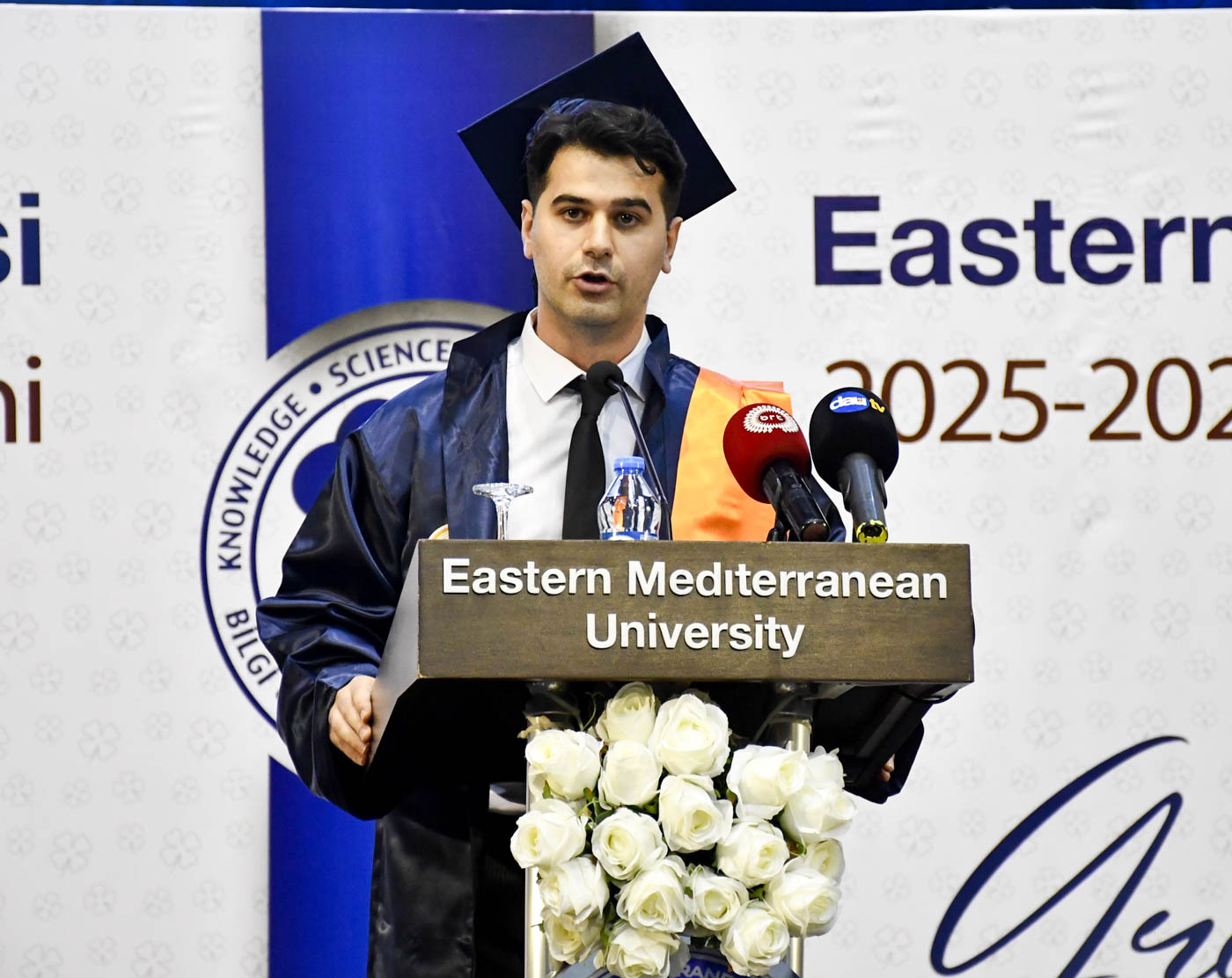 VYK Başkanı Dr. Erdal Özcenk, mezuniyet töreninde yaptığı konuşmada, mezuniyetin yalnızca akademik bir başarı değil, aynı zamanda doğruyu savunma ve sorumluluk alma bilinciyle başlayan yeni bir yaşam dönemi olduğunu vurguladı. Mezunlara hitaben, hayatları boyunca farklı makam ve ünvanlar üstlenebileceklerini ancak hiçbir koşulda hukuk, adalet ve vicdan çizgisinden ayrılmamaları gerektiğini belirten Dr. Özcenk, her zaman kolay ve popüler olanı değil, doğru ve adil olanı savunmanın önemine dikkat çekti. Doğru yolda yürüyenlerin zaman zaman yalnız kalabileceğini ancak tarih önünde asla mahcup olmayacaklarını ifade eden Dr. Özcenk, DAÜ’nün ve ülkenin bilgisi, vicdanı ve cesaretiyle hareket eden gençlere her zamankinden daha fazla ihtiyaç duyduğunu dile getirdi. Aileleri, karakter sahibi bireyler yetiştirdikleri için tebrik eden Dr. Özcenk, akademik ve yönetsel kadroya ise zor koşullara rağmen bilime ve eğitime sahip çıkmalarından dolayı teşekkür etti. Mezuniyetin bir ayrılık değil, Doğu Akdeniz Üniversitesi ile ömür boyu sürecek bir bağ olduğunu vurgulayan Dr. Özcenk, mezunlara hukuku pusula, vicdanı rehber edinmeleri tavsiyesinde bulunarak başarılar diledi.
