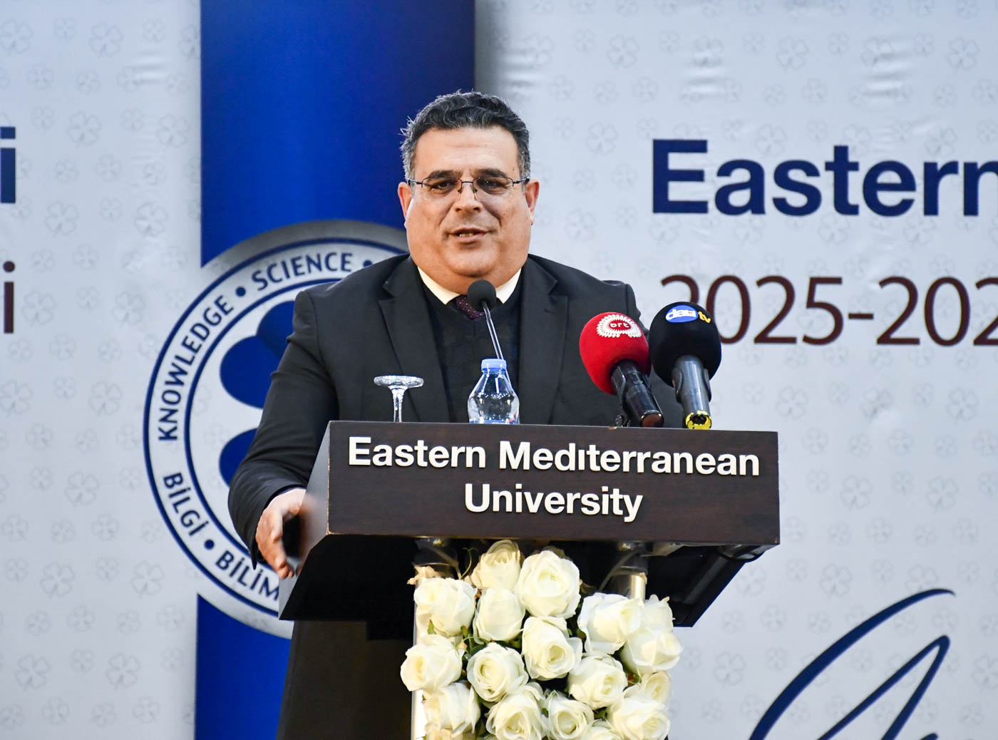 DAÜ Rektörü Prof. Dr. Hasan Kılıç, gerçekleştirdiği açılış konuşmasında mezuniyetin yalnızca bir diploma değil, aynı zamanda büyük bir sorumluluğun başlangıcı olduğunu vurgulayarak, mezunların aldıkları eğitimle topluma katkı sağlayacak bireyler olarak önemli roller üstleneceklerini ifade etti. Doğu Akdeniz Üniversitesi’nin kuruluşundan bu yana verdiği mezun sayısının 78 bine ulaştığını belirten Prof. Dr. Kılıç, mezunların dünyanın dört bir yanında üniversitenin ve ülkenin temsilcileri olduğunu dile getirdi. Mezunlara hitaben, hayat yolculuklarında her zaman “kolay olan” ile “doğru olan” arasında bir tercih yapacaklarını belirten Prof. Dr. Kılıç, gerçek liderliğin belirsizlik anlarında sorumluluk almaktan, ilkelere sadık kalmaktan ve cesaretle doğru olduğuna inanılan yolu seçmekten geçtiğini vurguladı. Mezuniyetin bir veda değil, Doğu Akdeniz Üniversitesi ile ömür boyu sürecek bir bağ olduğunu ifade eden Prof. Dr. Kılıç, mezunlara dürüstlük, adalet ve sorumluluk değerlerini pusula edinmeleri tavsiyesinde bulunarak, başarılarla dolu bir gelecek diledi.